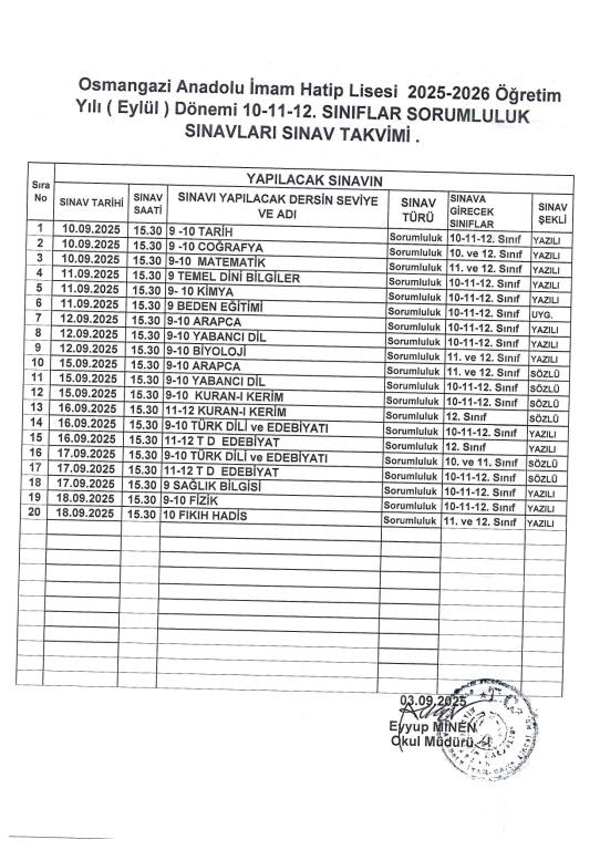 2025 GÜZ DÖNEMİ SORUMLULUK SINAVI LİSTESİ.